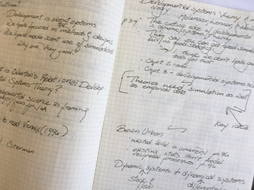 I quickly found that although the conceptual models I would draw for my statistical models and my dynamic systems models looked fundamentally the same – lots of constructs connect with arrows – they were not. In statistical models, time was either implied in a causal pathway (parenting style influences legitimacy beliefs over time, not simultaneously) or explicitly (age). In dynamic systems or computational models, on the other hand, time was iterative. I would start my process at time 1. My processes would occur at that step. Now I was at time 2 but beginning my process again at a new point.